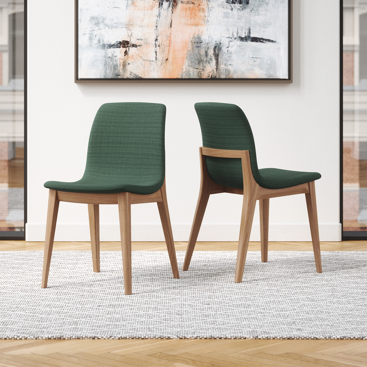 This chair has an elegantly-designed single-piece seat and backrest mounted to a solid wood frame. These chairs are offered in a variety of finishes.