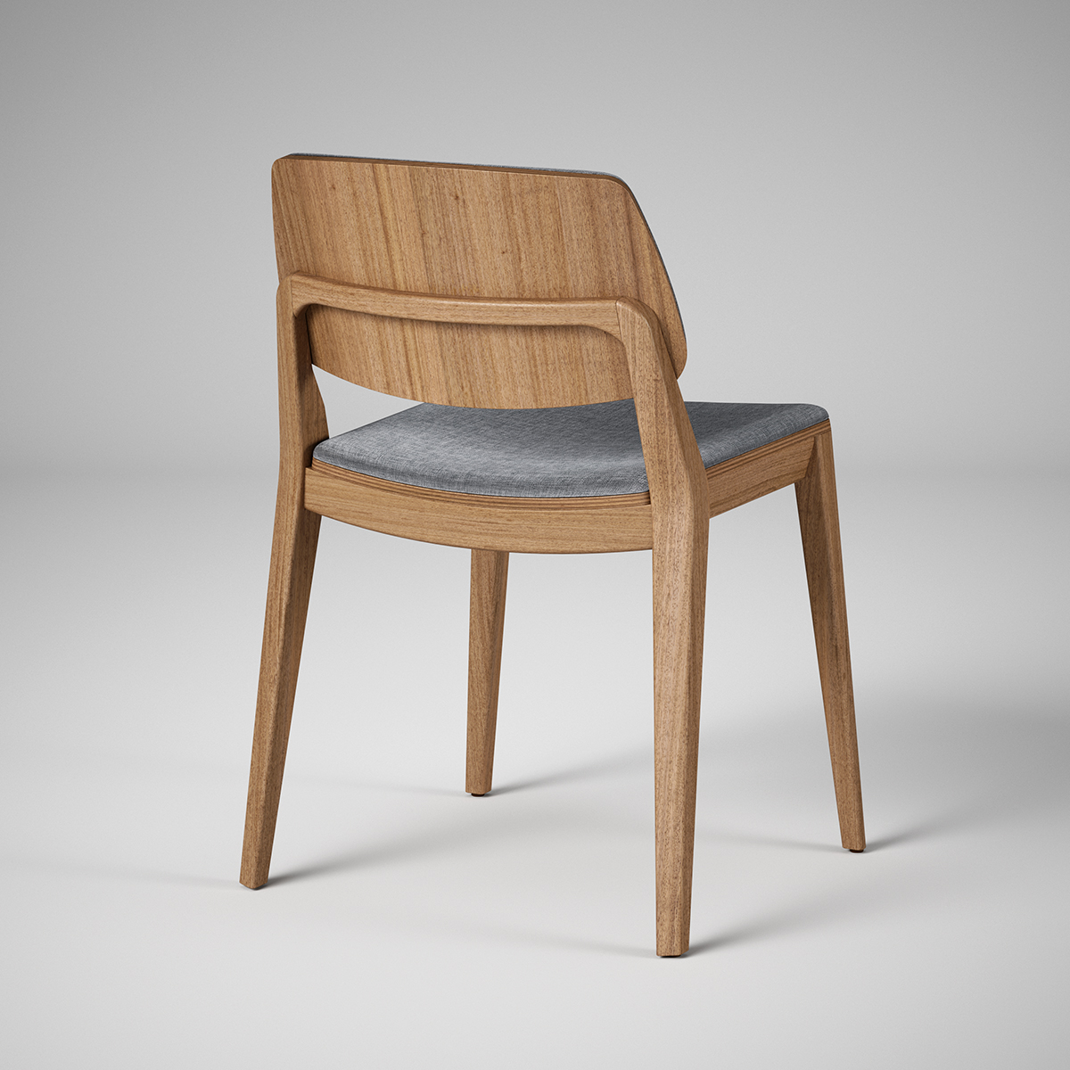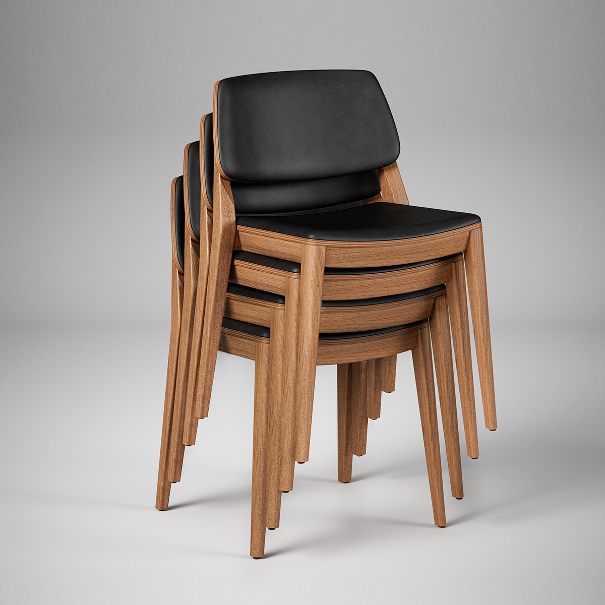 This chair has a wide solid wood frame with an upholstered seat and backrest. Its stackable design is a bonus for spaces that change use or need constant cleaning. This chair, as with all our models, is very durable and built to last.