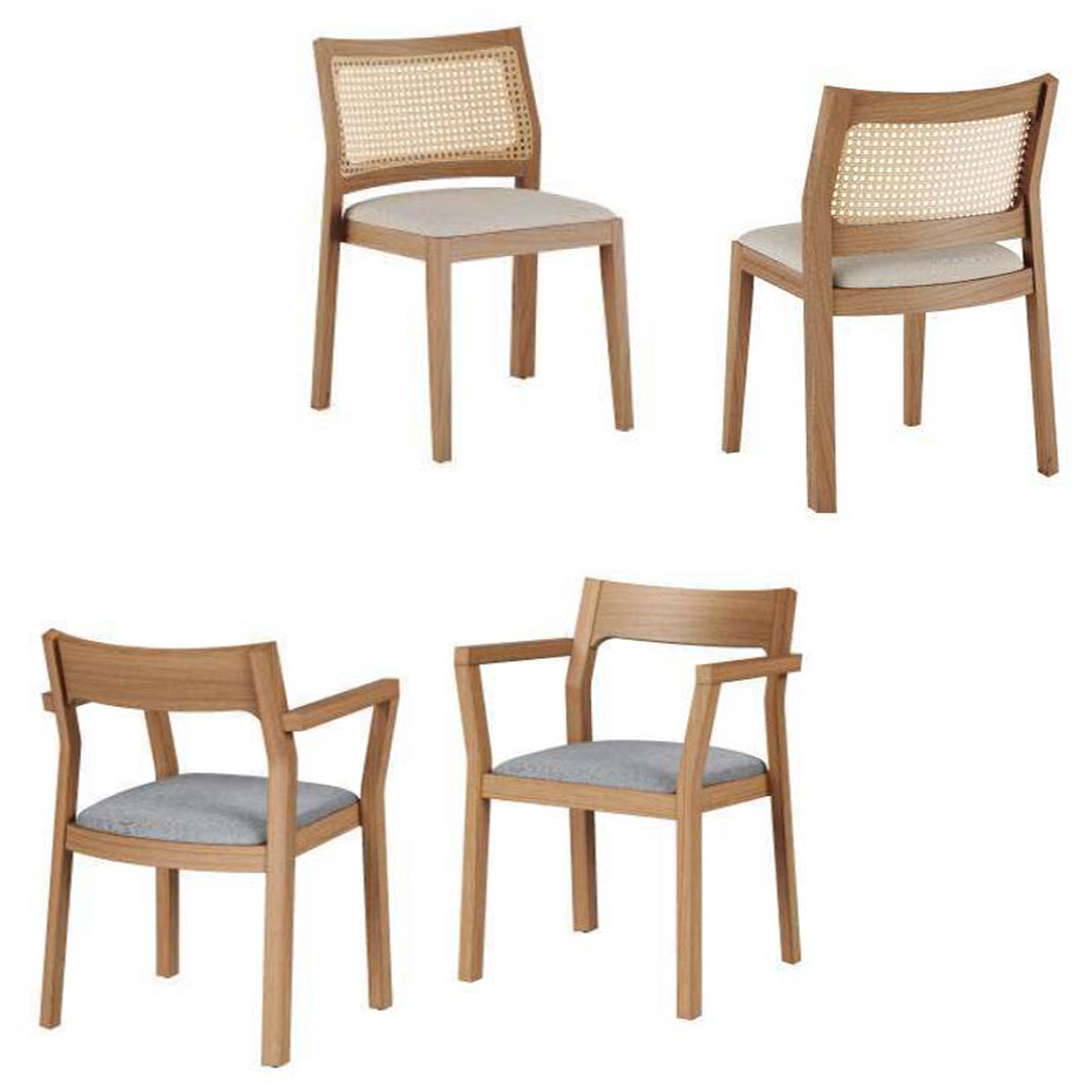 This chair is ideal for a casual space and is offered with or without armrests. Its solid wood frame is extremely durable. It is offered with a ratan backrest and in several finish options.