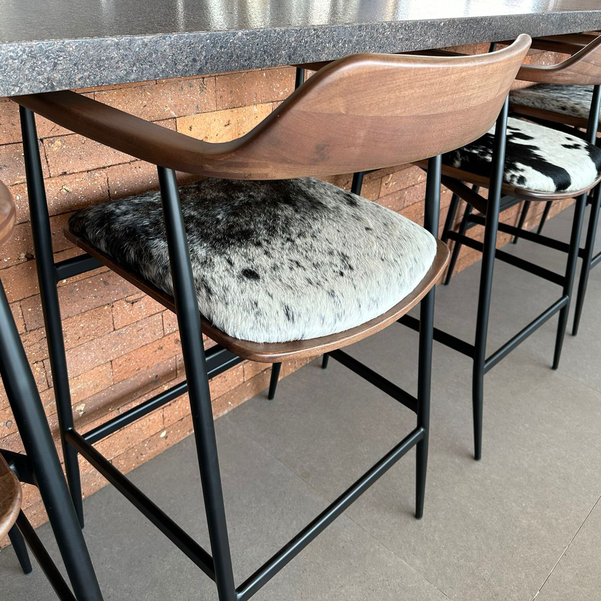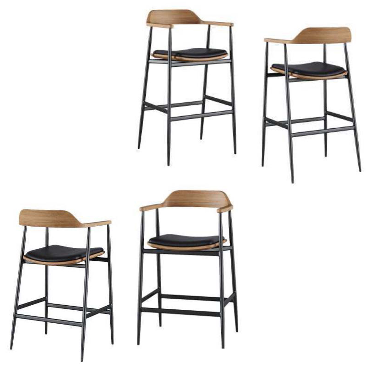 This stool has a metal frame with solid wood seat and backrest. This stool has clean lines with elegantly-styled legs and is offered in two heights.