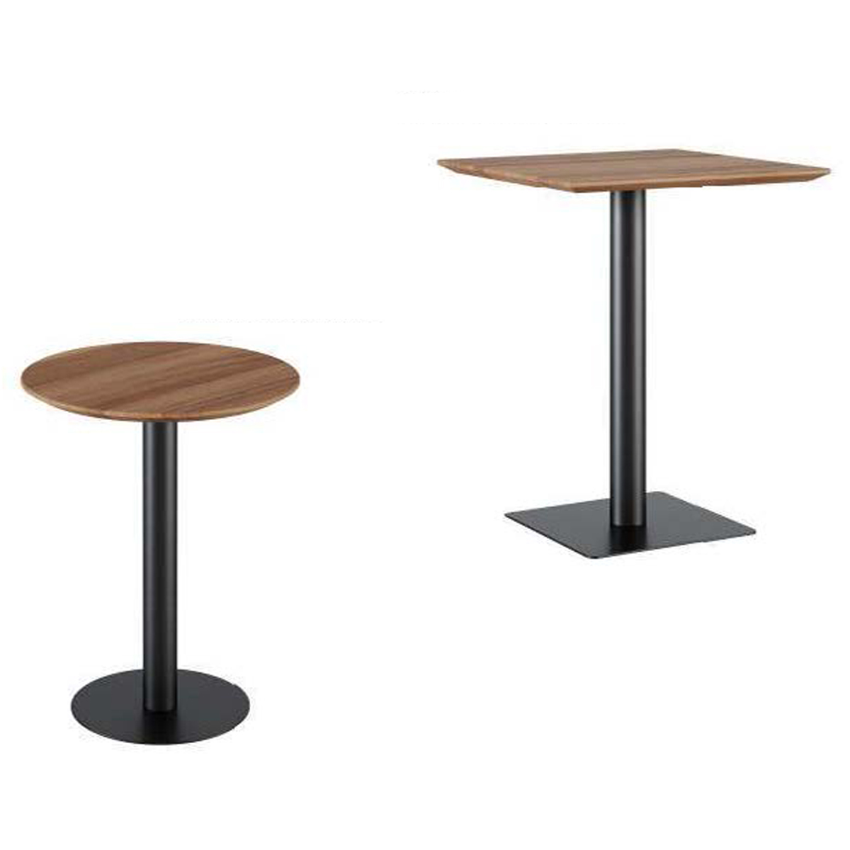 Made from Royal Mahogany, this table is ideal for seating two people. It's solid wood top can be made square or round. This table has a metal base and is offered in a few colors.